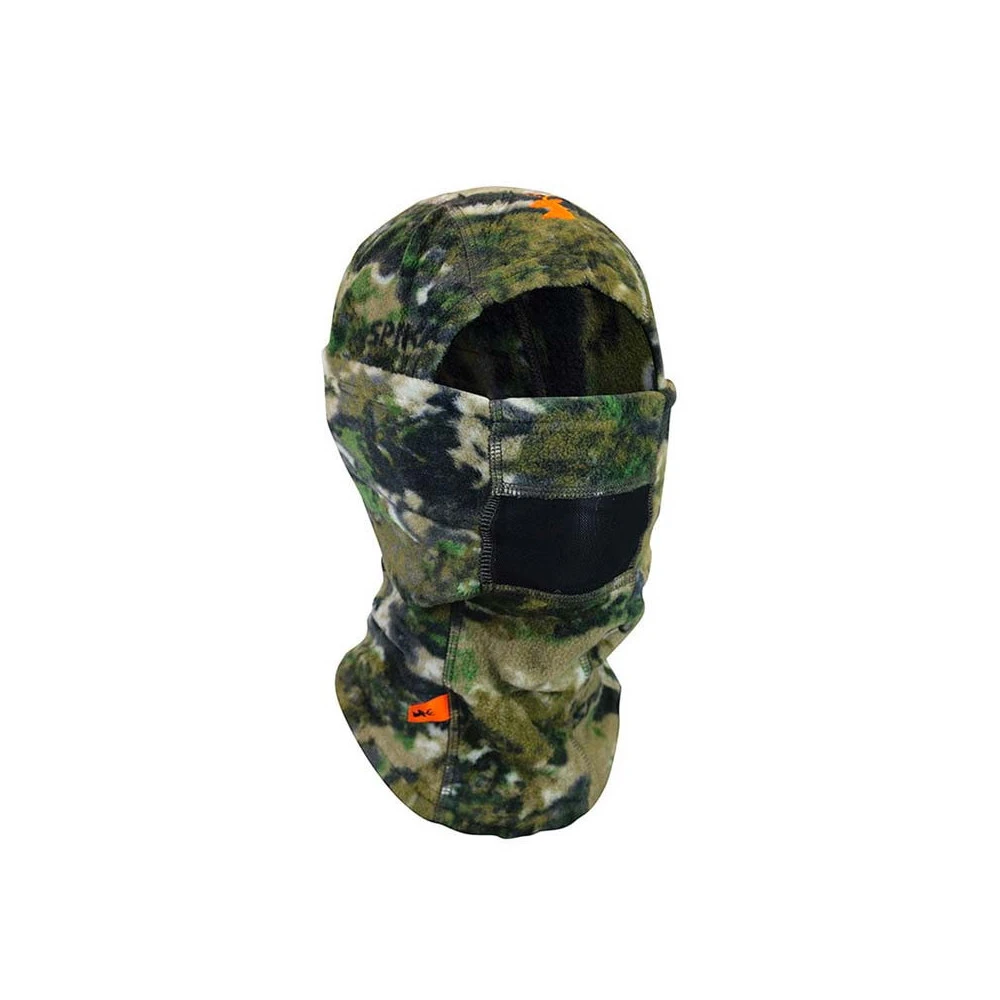 Cagoule Heatfleece conçue en polyester polaire de 200g et imprimée d’un motif de camouflage bois. Bouche ventilée offrant un grand confort et une isolation parfaite.