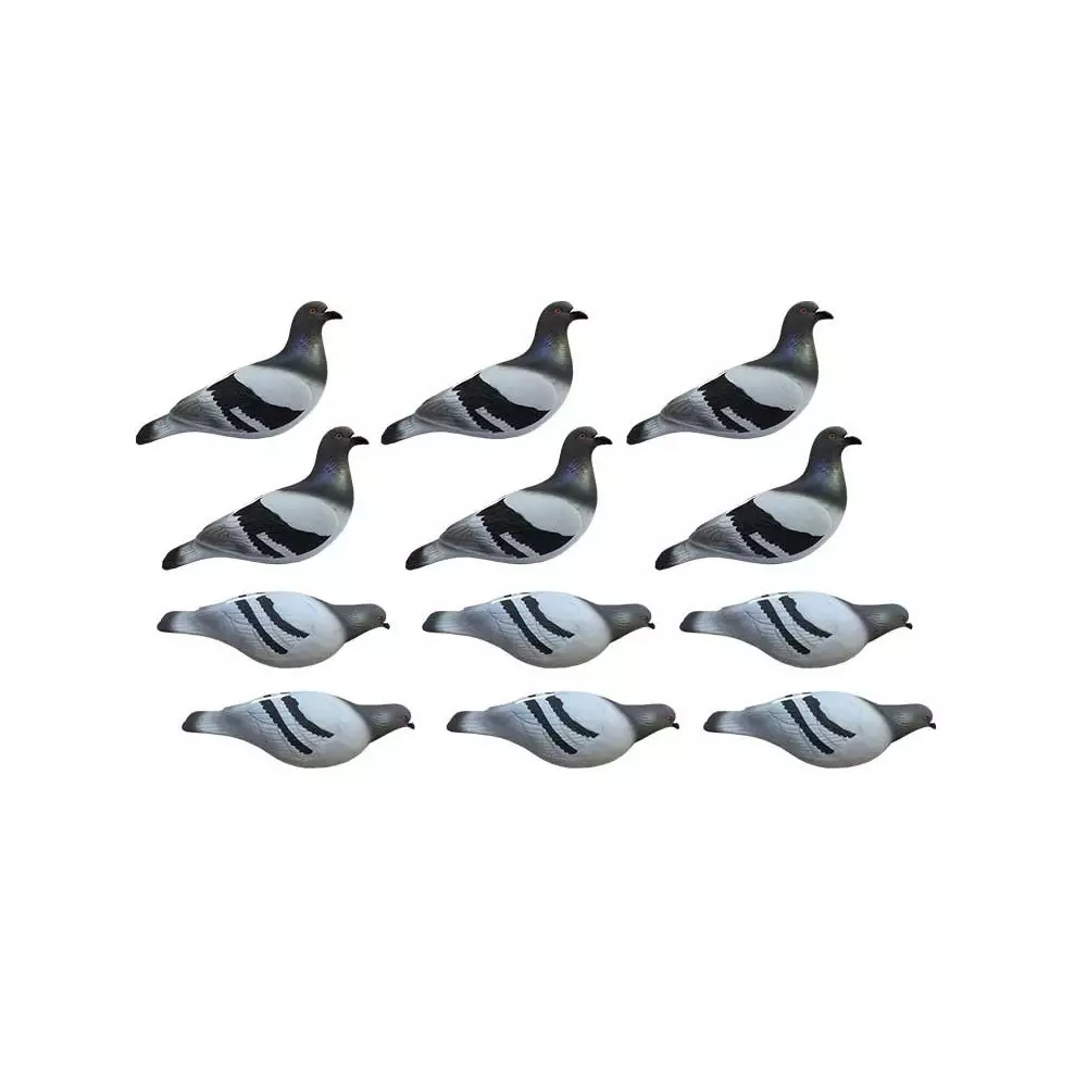 Pack de 12 blettes de pigeon biset HD. Les formes sont livrées avec un piquet en fibre de verre qui leur offre mobilité au vent. Le lot est constitué de 6 formes de pigeon actif et 6 mangeurs.