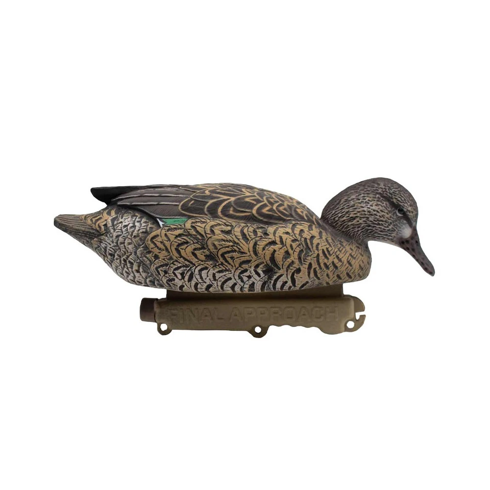 Les nouvelles formes de sarcelle Final Approach proposent un réalisme époustouflant. Du sommet de la tête jusqu’à la queue, tous les détails de la sarcelle ont été reproduit avec un détail inégalé. Conçues en plastique semi-rigide, ce matériau permet à la fois de reproduire le plumage en trois dimensions et offre à la blette une meilleure robustesse. Le pack est constitué de 12 formes : 8 mâles au repos et 4 femelles bec dans l’eau.