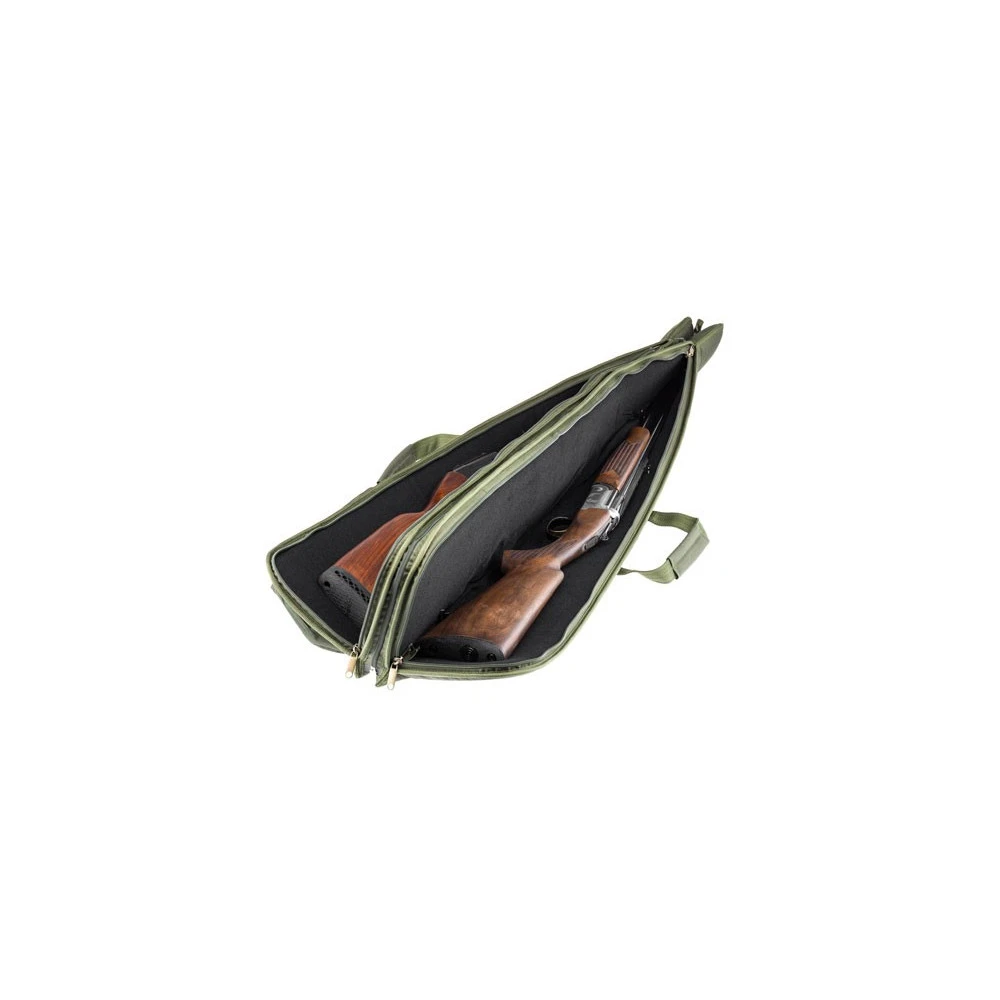 Fourreau en tissus rembourré pour deux fusils de chasse. Possibilité de séparer les deux fourreaux à l’aide d’une fermeture éclair présente sur toute la longueur. Longueur : 130 cm.