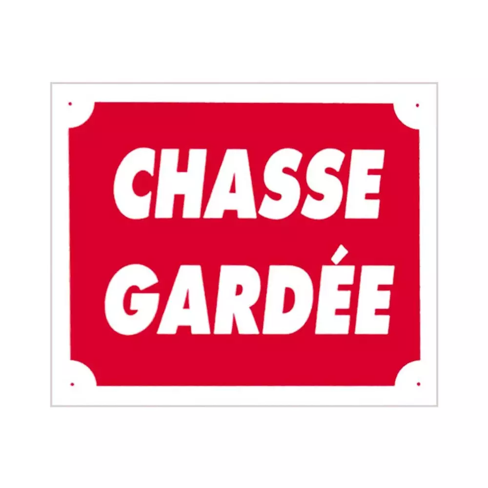 Pancarte fabriquée à partir d’Akilux, matière synthétique, légère, rigide et résistante. Dimensions : 30 x 25 cm. Intitulé du panneau : « Chasse gardée »