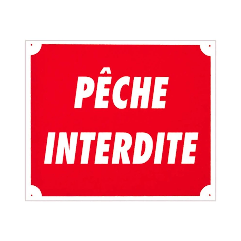 Pancarte fabriquée à partir d’Akilux, matière synthétique, légère, rigide et résistante. Dimensions : 30 x 25 cm. Intitulé du panneau : « Pêche Interdite »