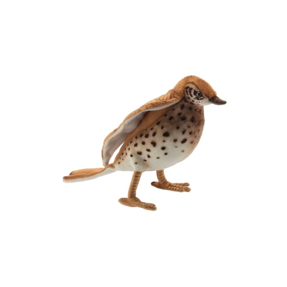 Peluche grive. Bec et pattes en mousse. Longueur : 31 cm.