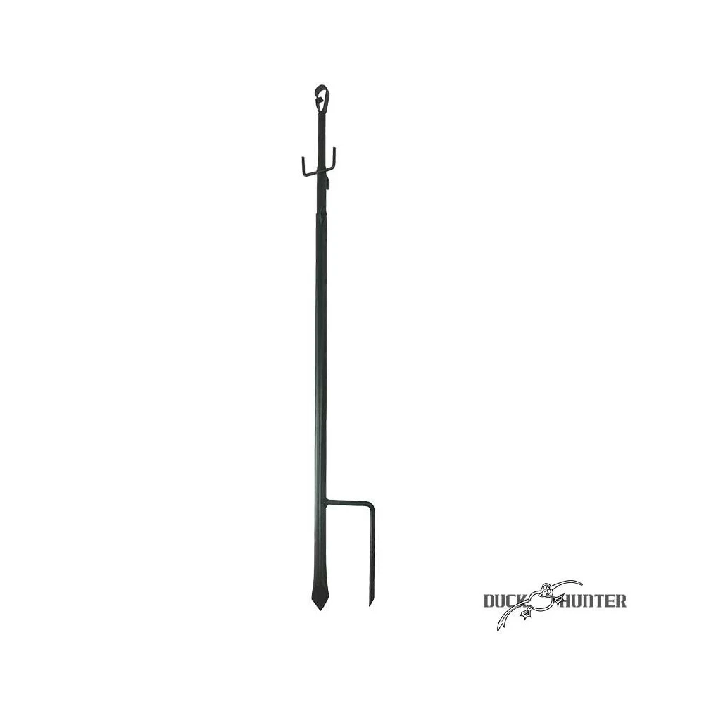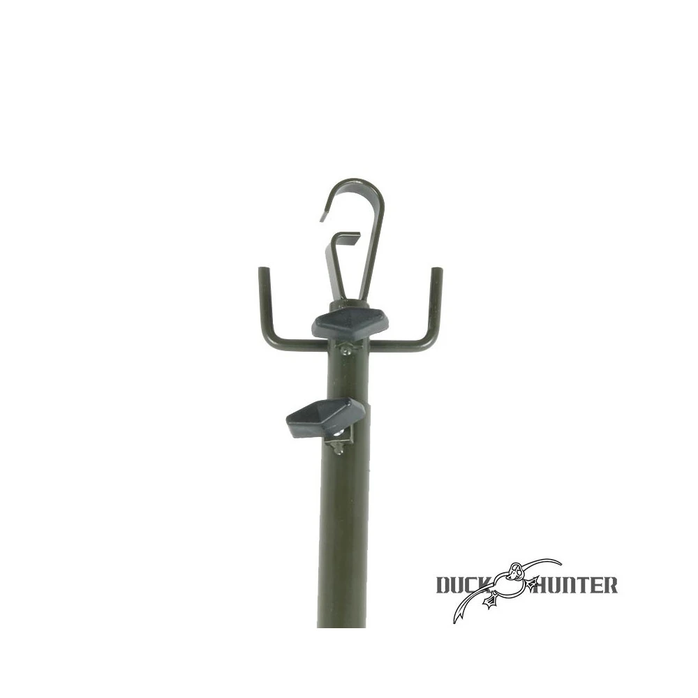 Le piquet d’affût dispose d’un crochet arrondi à son extrémité supérieure afin d’un maintenir un filet de camouflage. Afin d’assurer un support supplémentaire, nos piquets d’affûts disposent d’un second crochet sur le premier élément. Celui-ci se retrouve donc au milieu du piquet lorsque celui-ci est déplié, il évitera ainsi à votre filet de camouflage de bouger au vent.