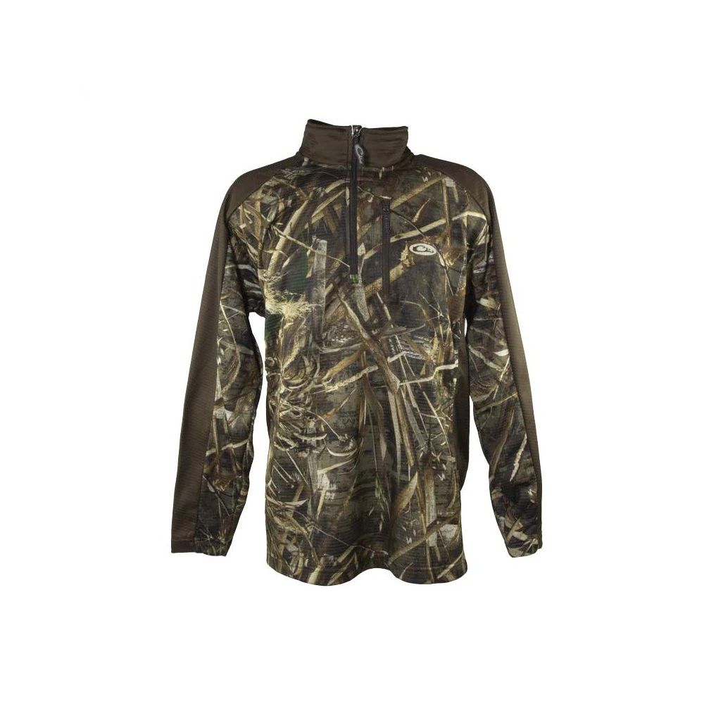 Sous-pull à col-montant zippé Drake. Matière légère, réspirante offrant une excellente isolation thermique. Le sous pull est imprimé du motif de camouflage Realtree Max5. Conception en 100% polyester polaire. Poche zippée à la poitrine.